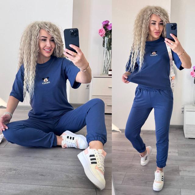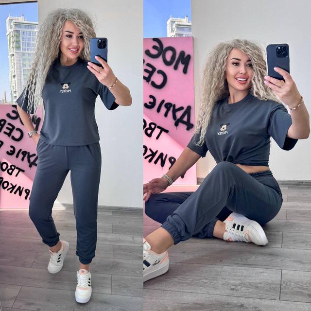 Жіночий стильний спортивний костюм футболка з накатом і штани (Норма та напівбатал)